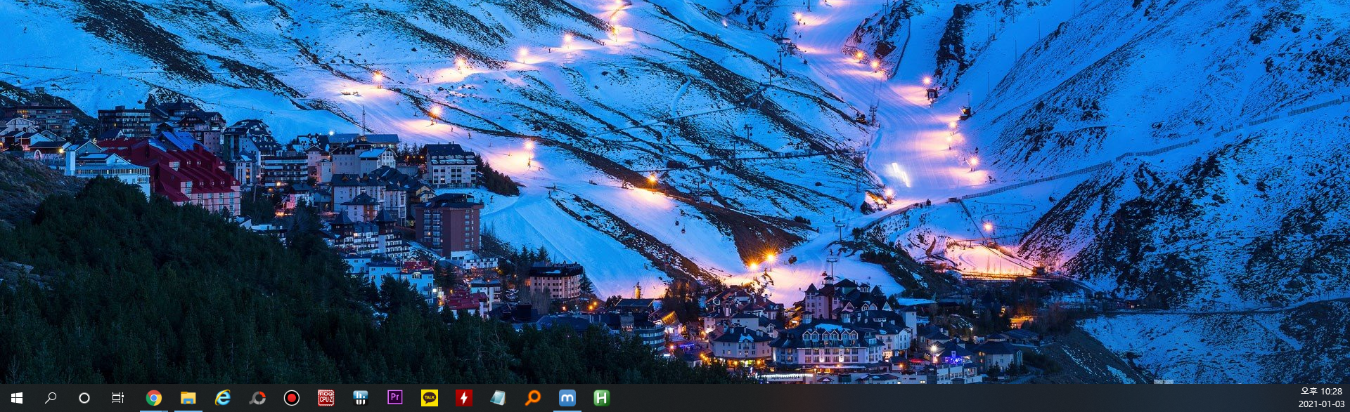 설정이 완료된 후 바탕화면으로 빠져나오면 위 사진처럼 작업표시줄이 자동으로 숨겨진 상태로 됩니다. 작업표시줄바의 아무곳이나 마우스를 옮기면 작업표시줄이 다시 나타납니다.