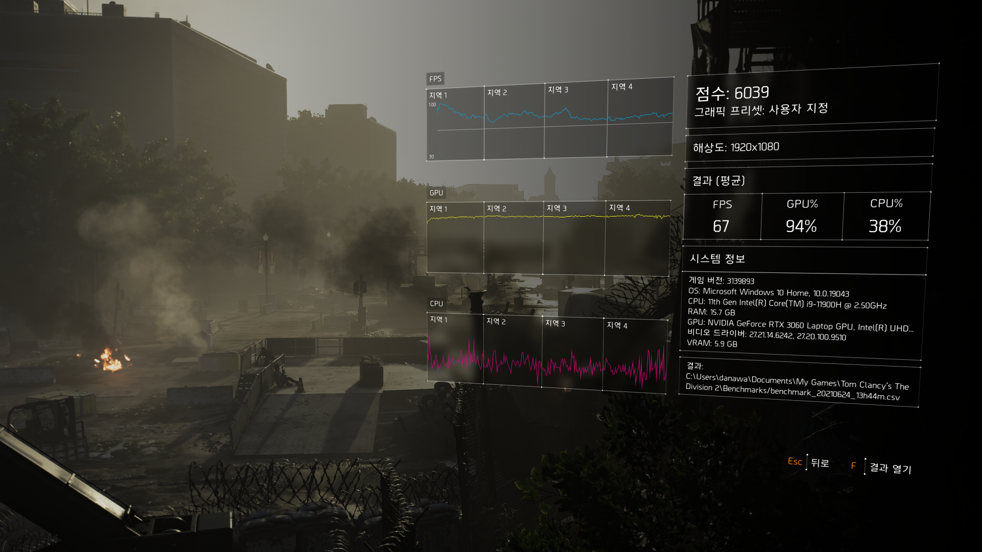디비전2의 FHD해상도 매우높음 기준으로 했을 때 평균 프레임은 67프레임이 나오며, 월드워Z는 평균 103 프레임이나온다.