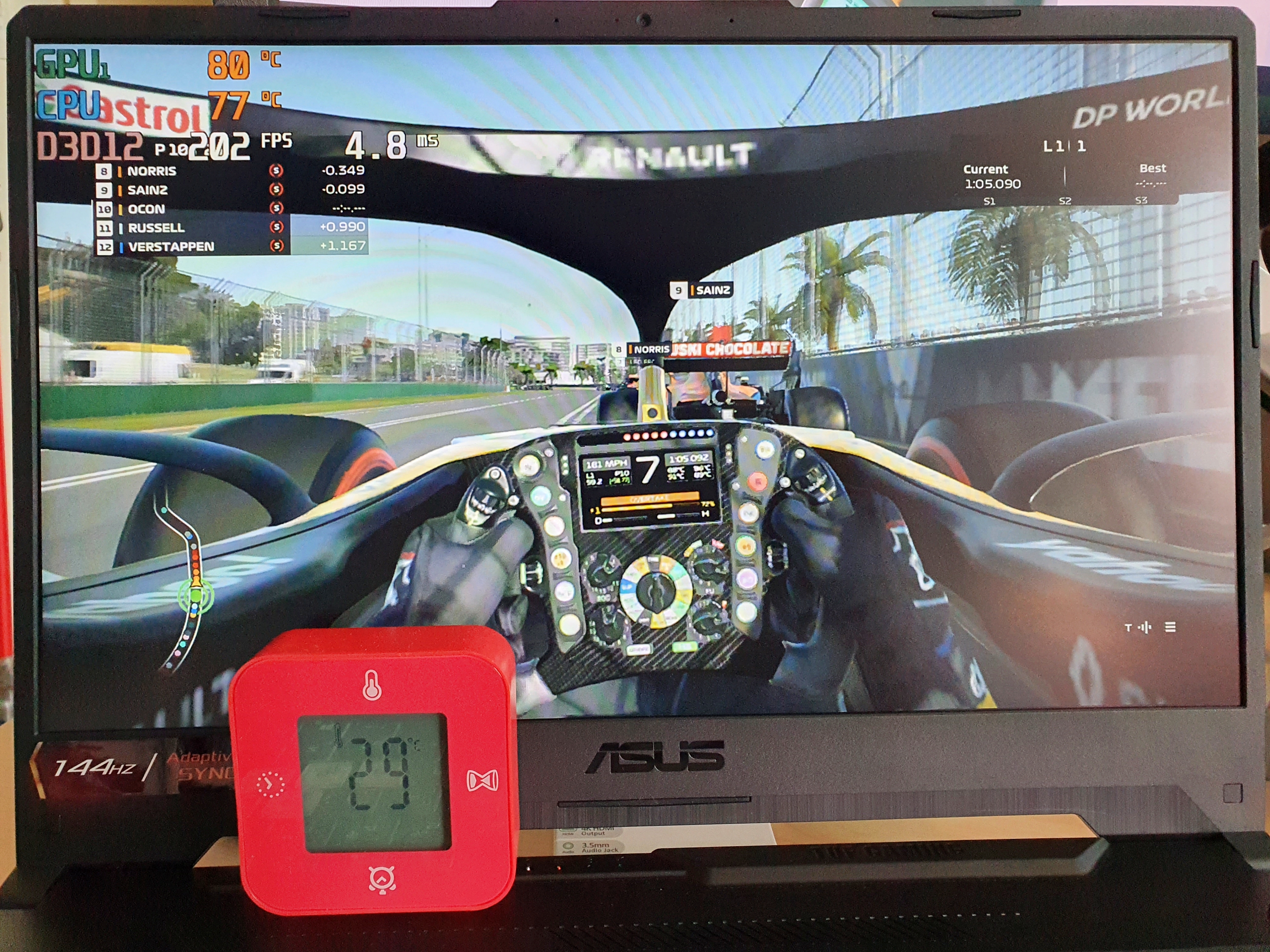 실내온도가 29도에서 CPU 및 GPU가 풀로드가 걸린 상태에서 온도는 GPU는 80도 CPU는 77도로서 온도제어가 잘 컨트롤 되는 것을 볼 수가 있다.