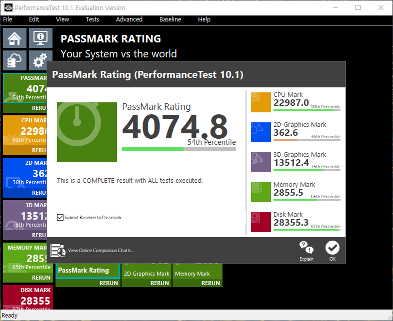 Performance Test 에서는 CPU는 상위 10%에 들 정도로 높은 점수를 보여주며 3D그래픽도 상위 15% 안에는 랭크가 될 정도로 높은 성능을 보여준다.