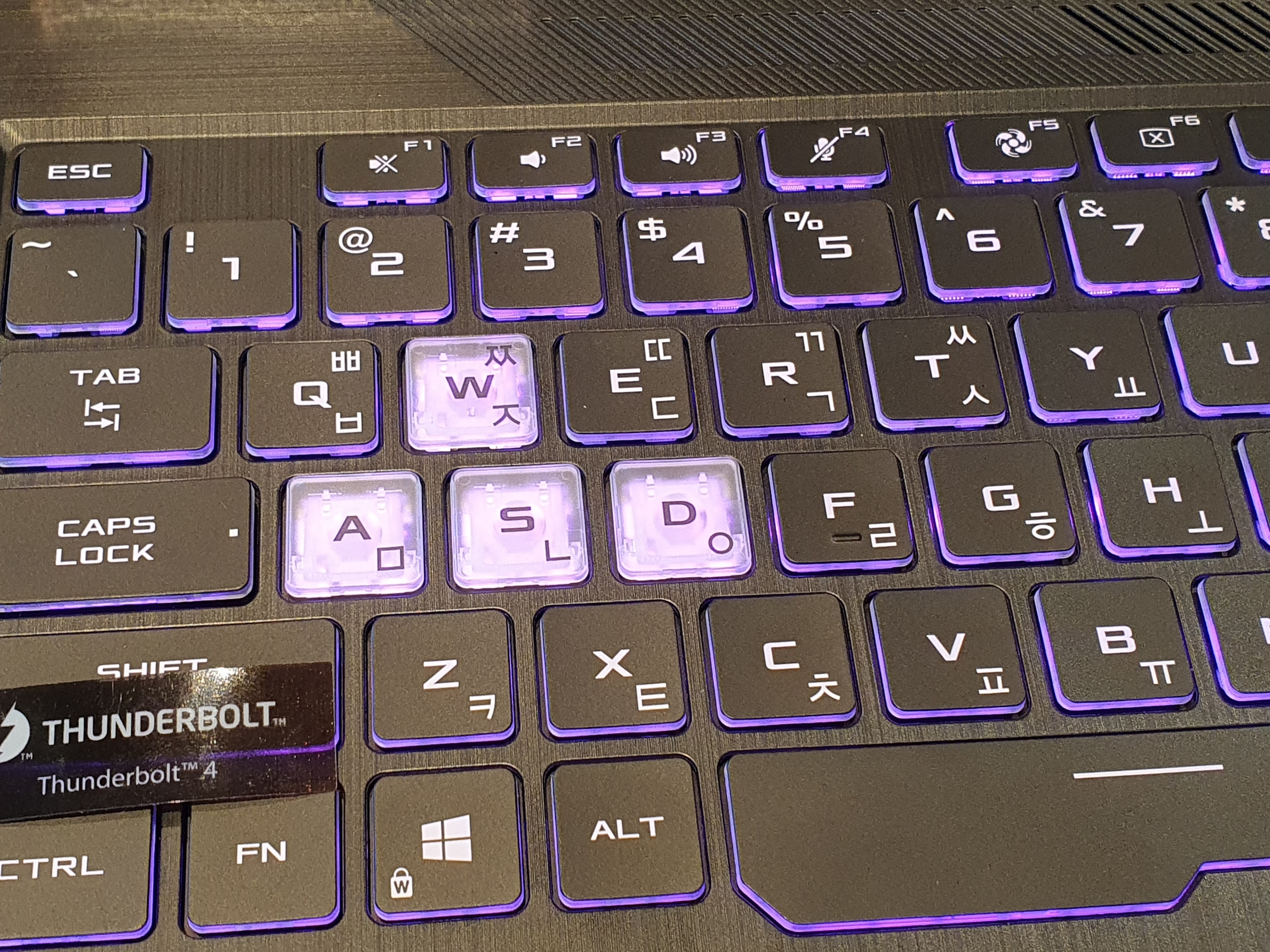 15.6인치 사이즈 답게 숫자키가 포함된 풀배열 키보드를 채택했으며, 키보드에서도 게이밍에 최적화된 요소들을 몇가지 찾아볼 수 있다.