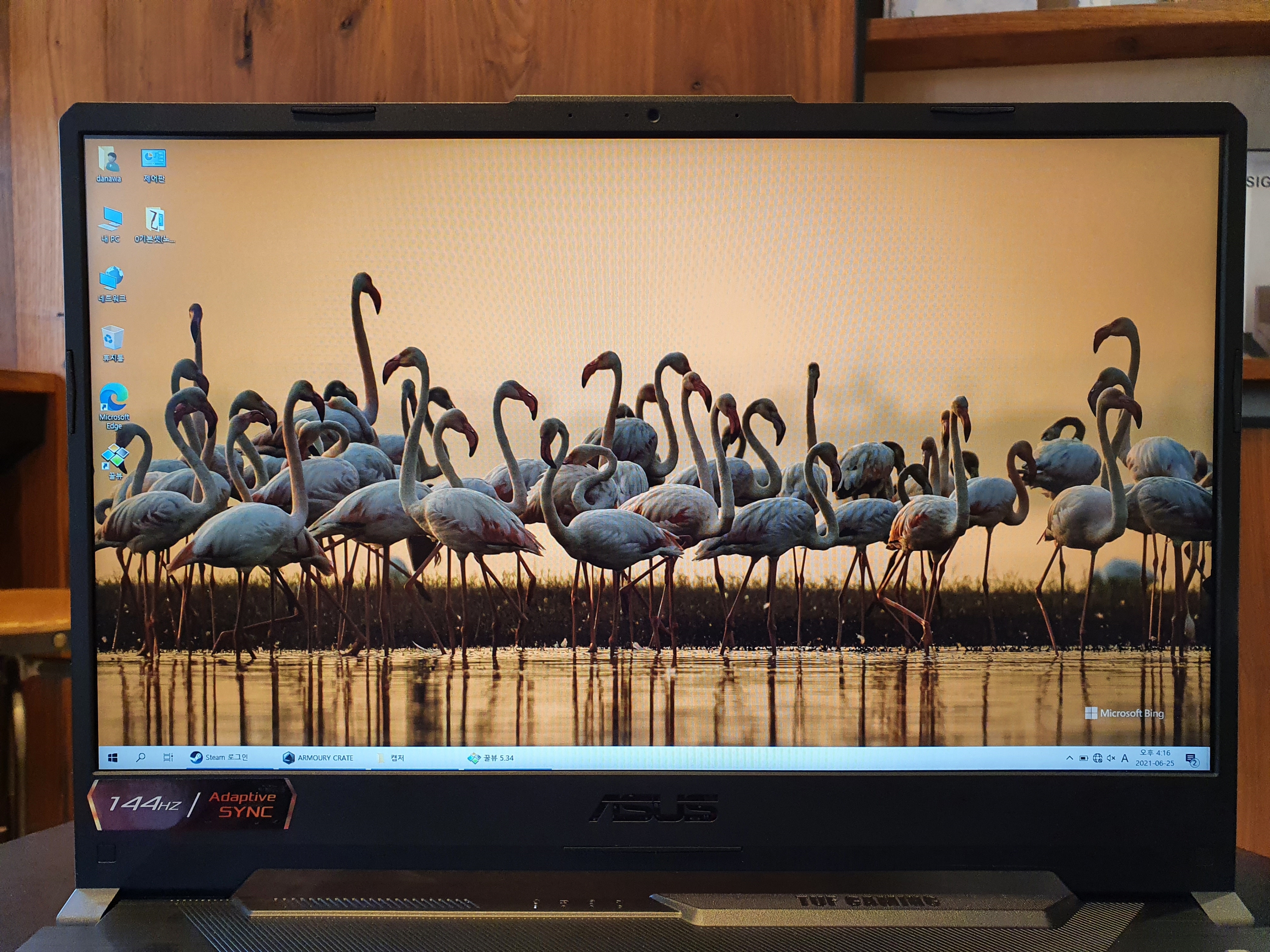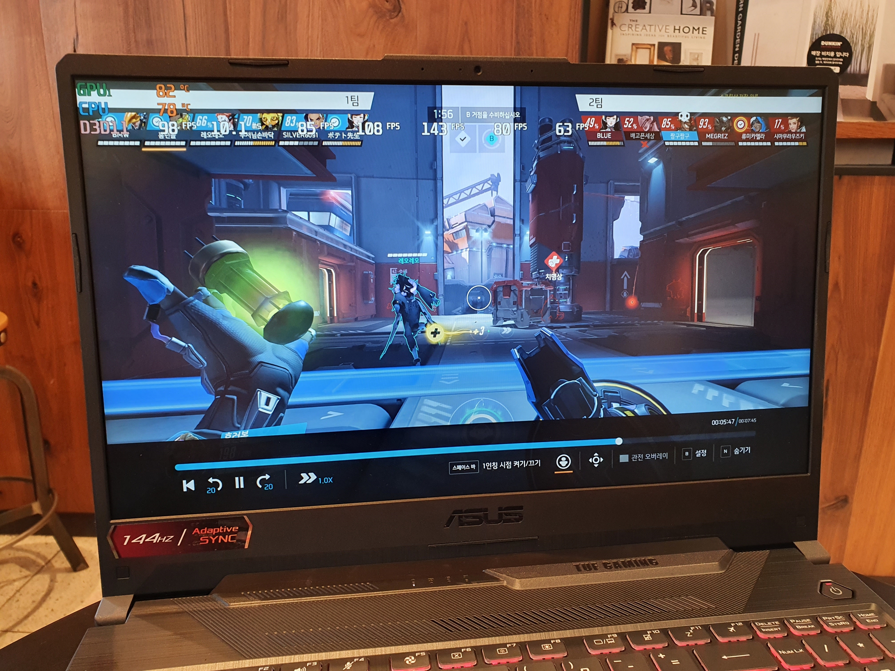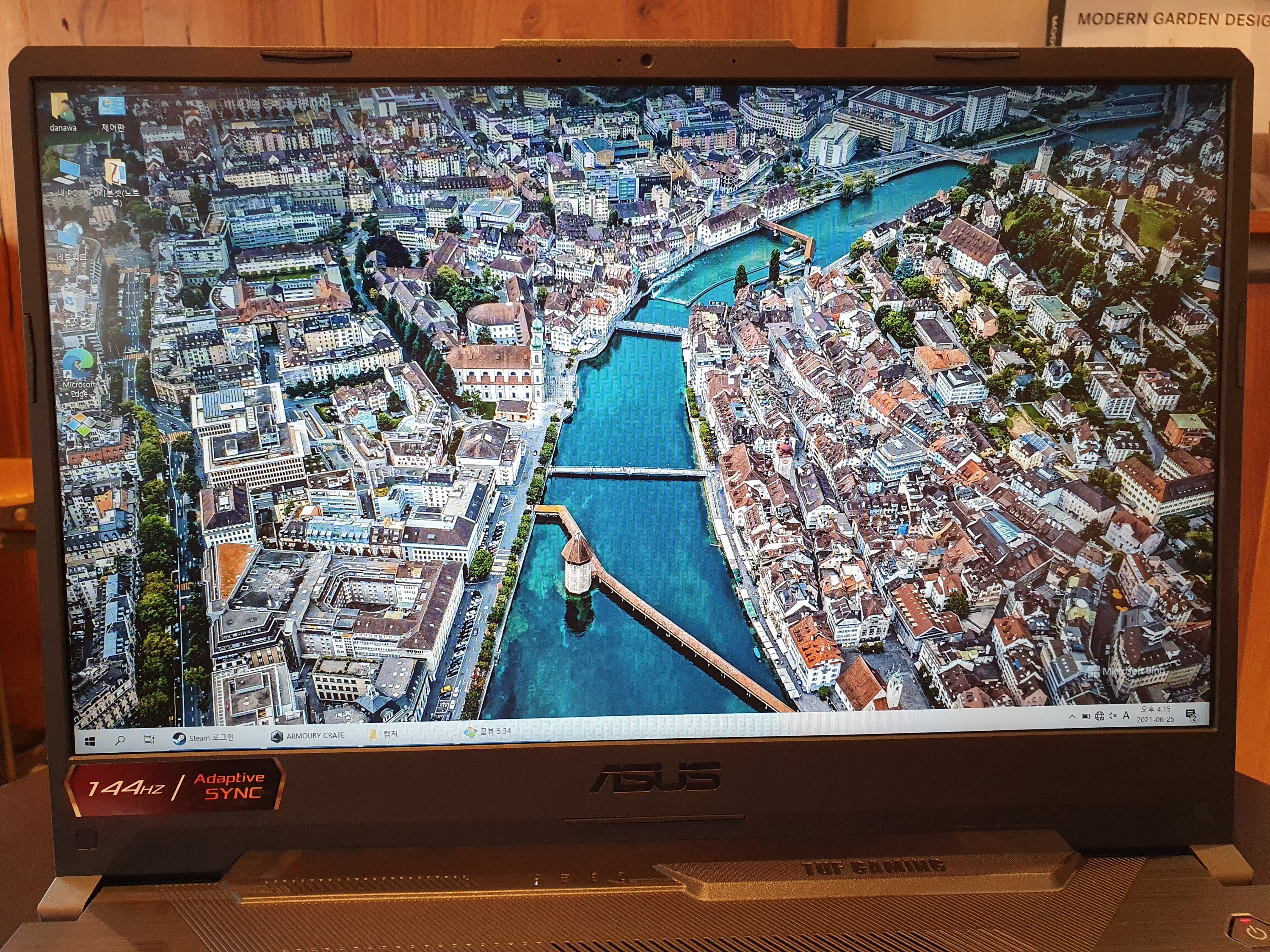 디스플레이 스펙상 62.5% sRGB 를 지원하고 있어 색의 재현율이 조금 걱정은 되었지만, IPS패널답게 충분히 선명한 화질을 보여준다. 하지만 무엇보다도 게이밍노트북이라는 용도에 맞게 응답속도가 중요한 만큼 144Hz의 주사율은 정말 빠른 응답률과 부드러운 화면전환을 보장하기 때문에 좋다.