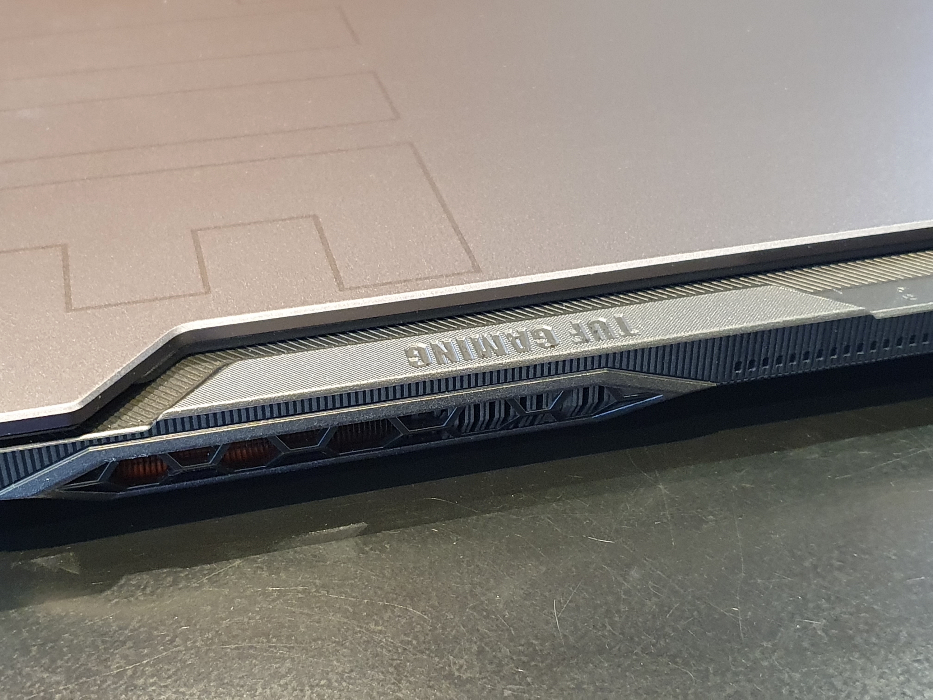 먼저 디자인을 살펴보면, 상판은 세련된 이클립스 그레이와 그래파이트 블랙이 조화롭게 이뤄져 있으며 바디 주변의 육각형 보강재와 헤어라인 브러시스트로크와 더불어 밀스펙으로 유명한 TUF의 로고가 한층 더 안정감을 더 해 주는 디자인이다.