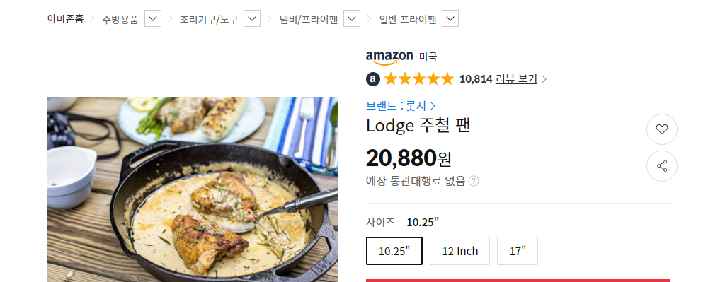 저는 11번가 아마존에서 lodge 주물팬을 하나 주문했네요~