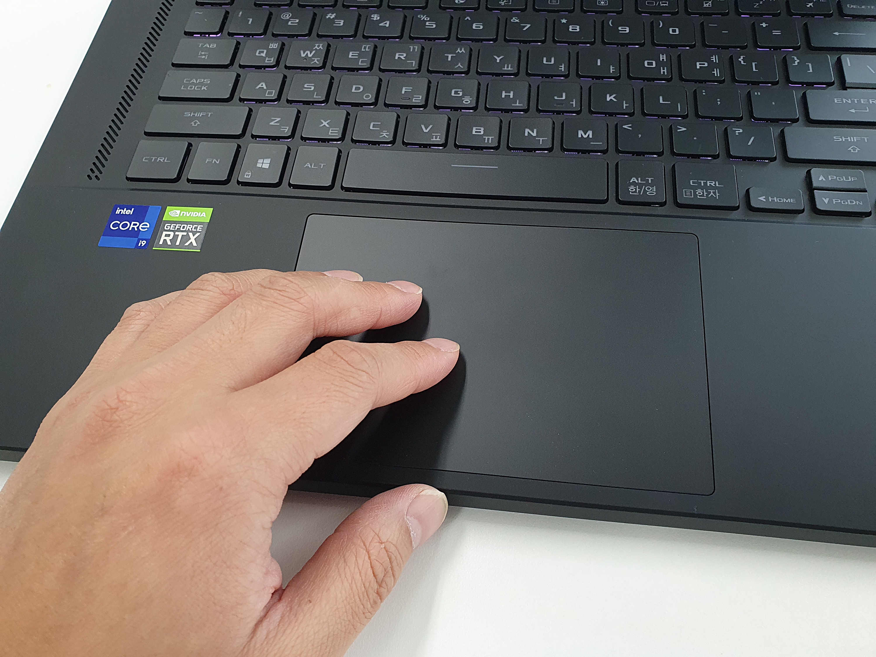 터치패드는 일반적인 제품들에 비해 약 20% 정도 넓은 면적으로서 투핑거, 쓰리핑거 등의 여러가지 제스처 기능과 터치 포인팅을 할때 더욱 쾌적하게 사용할 수 있다.