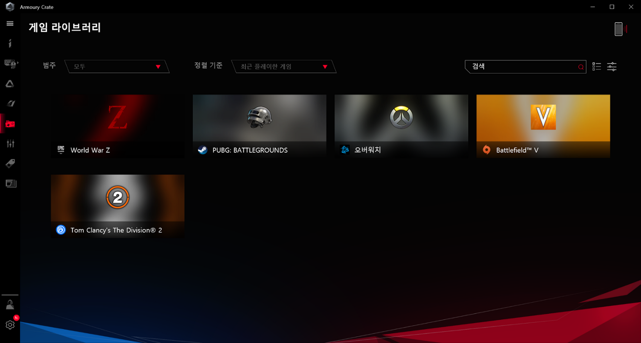 ASUS는 ROG Armoury Crate 를 통해 시스템의 성능, 전력, 팬, RGB 조명 등을 제어할 수 있으며 다양한 프로필과 시나리오 등을 통해 유저커스터마이징이 가능한 프로그램을 제공하여 편의성을 높이고 있다.