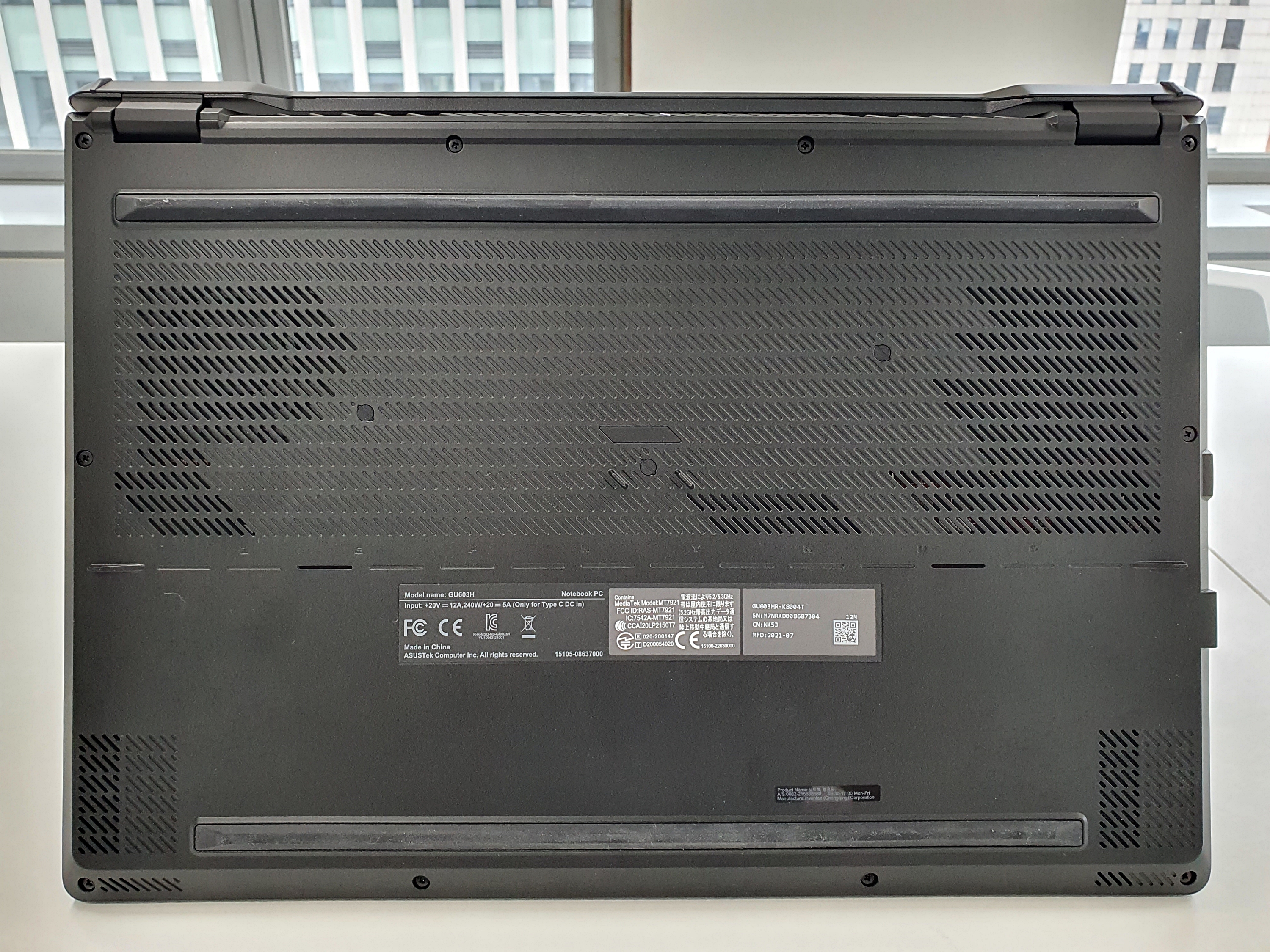고성능 노트북의 경우 발열으로부터 자유로워질 수 없다. 하지만 ROG의 AI 쿨링을 통해서 6개의 히트파이프가 내장되어 내부의 열을 외부로 전달하며 아크플로우 팬이 채택되어|ㅅ다. 또한 셀프 클리닝이 적용되어 모터 내부에 흡입되는 먼지를 최소화 하는 등 노트북 상판, 힌지, 하판 등에 다양한 통풍구를 설치하여 발열에 강한 면모를 보인다.