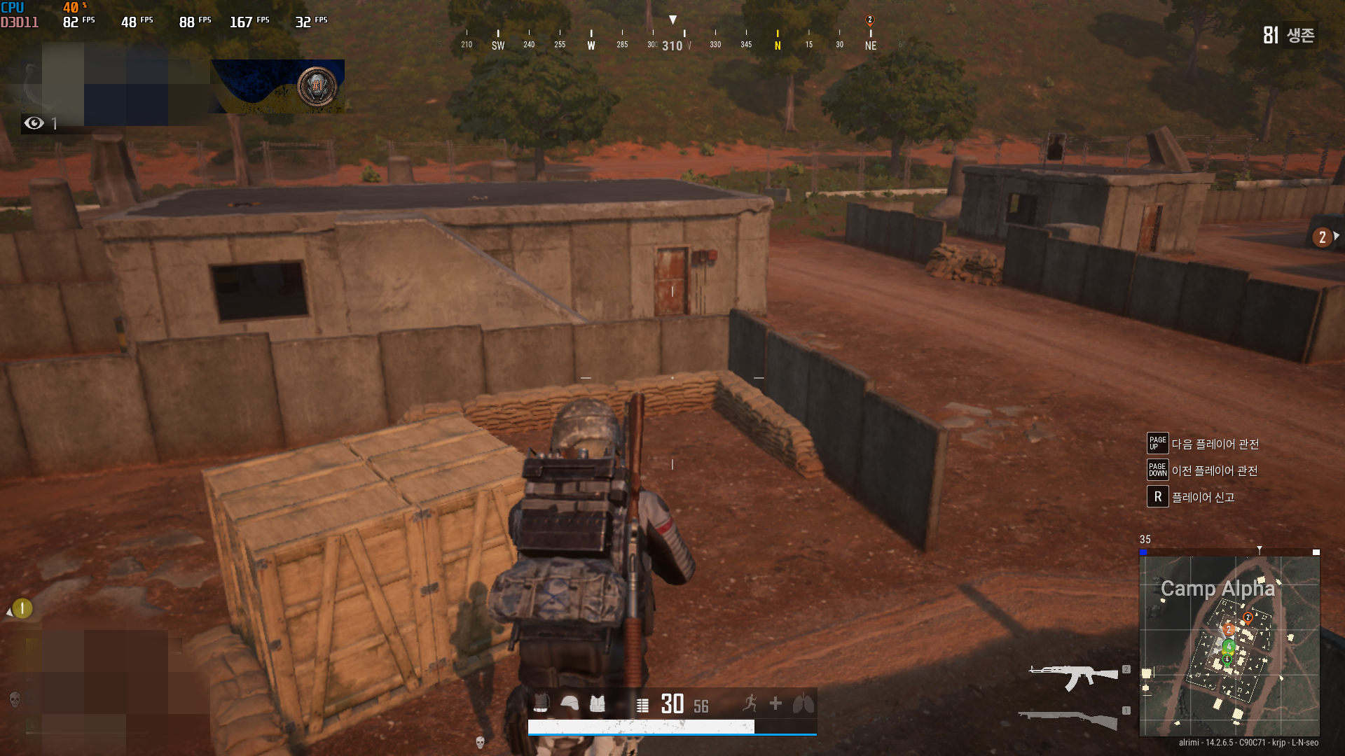 배틀그라운드는 국민옵션으로 했을 대 평균 88.2프레임, 최소 48 프레임, 1% low 프레임은 35프레임으로서 아주 부드럽지는 않지만 충분히 게임을 즐기는데 무리가 없다.