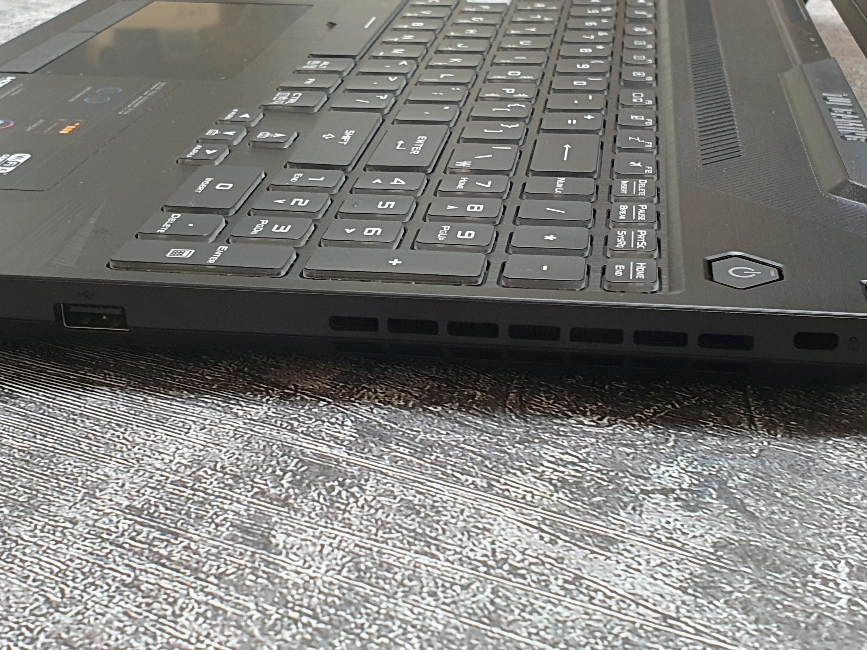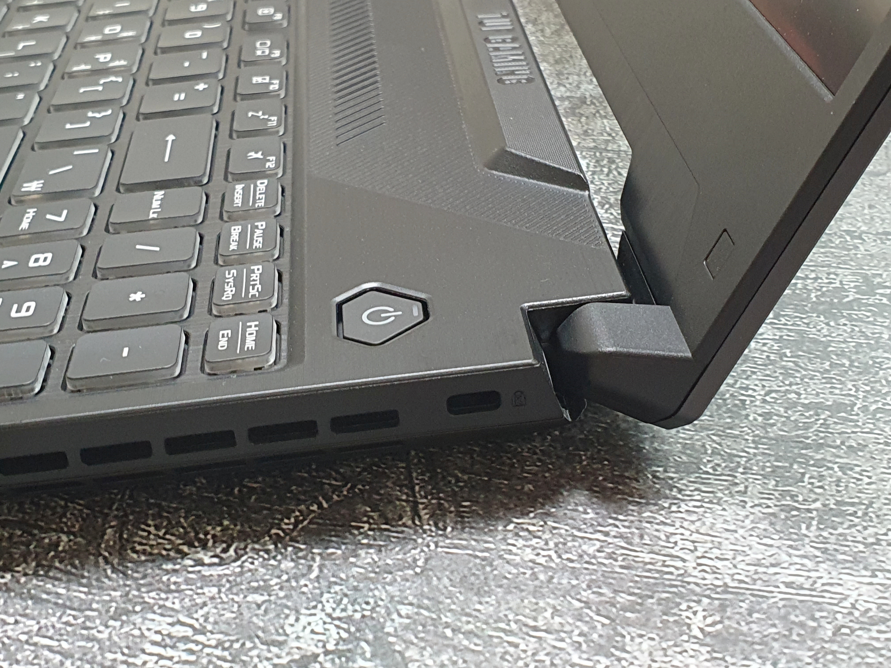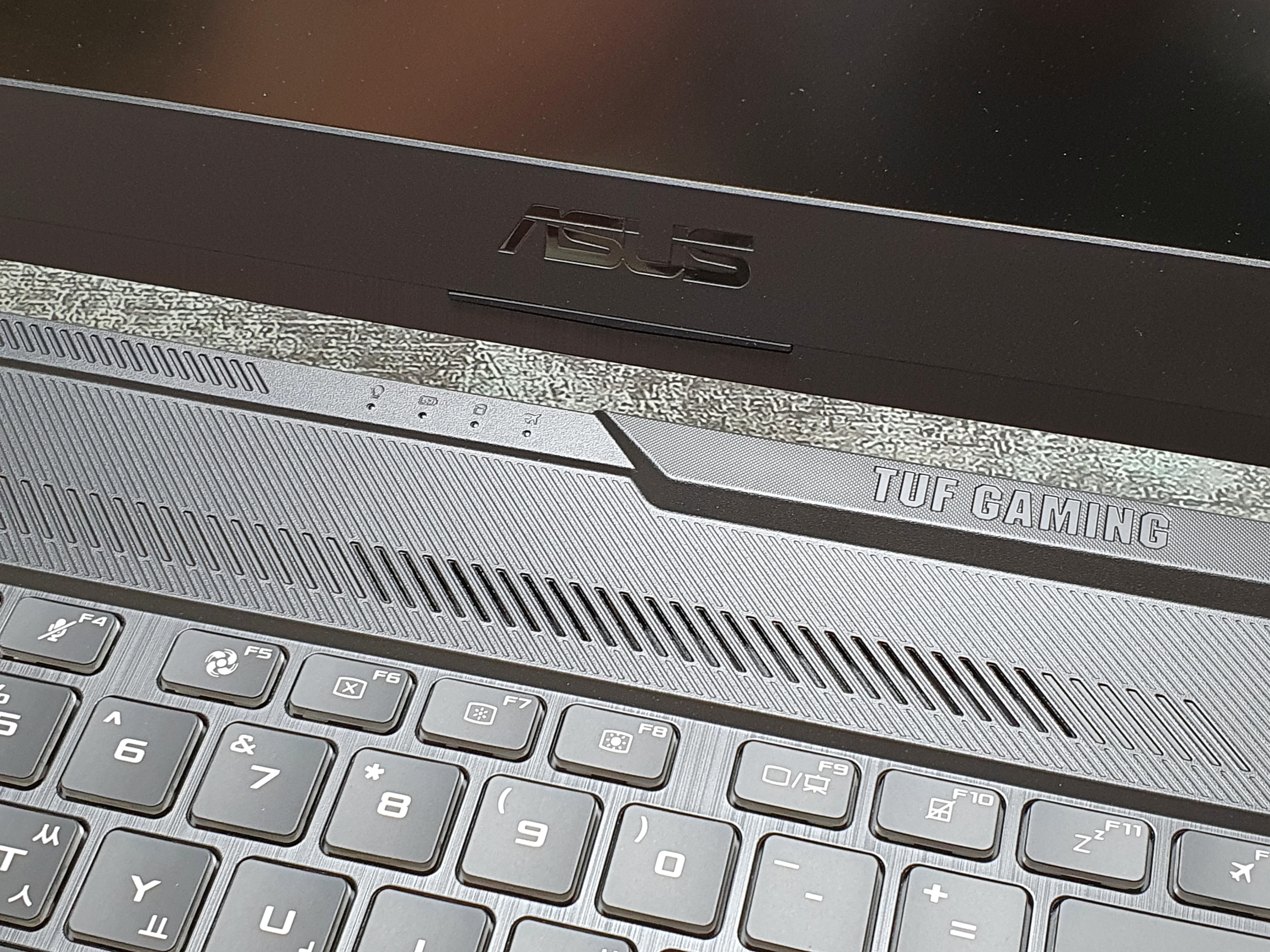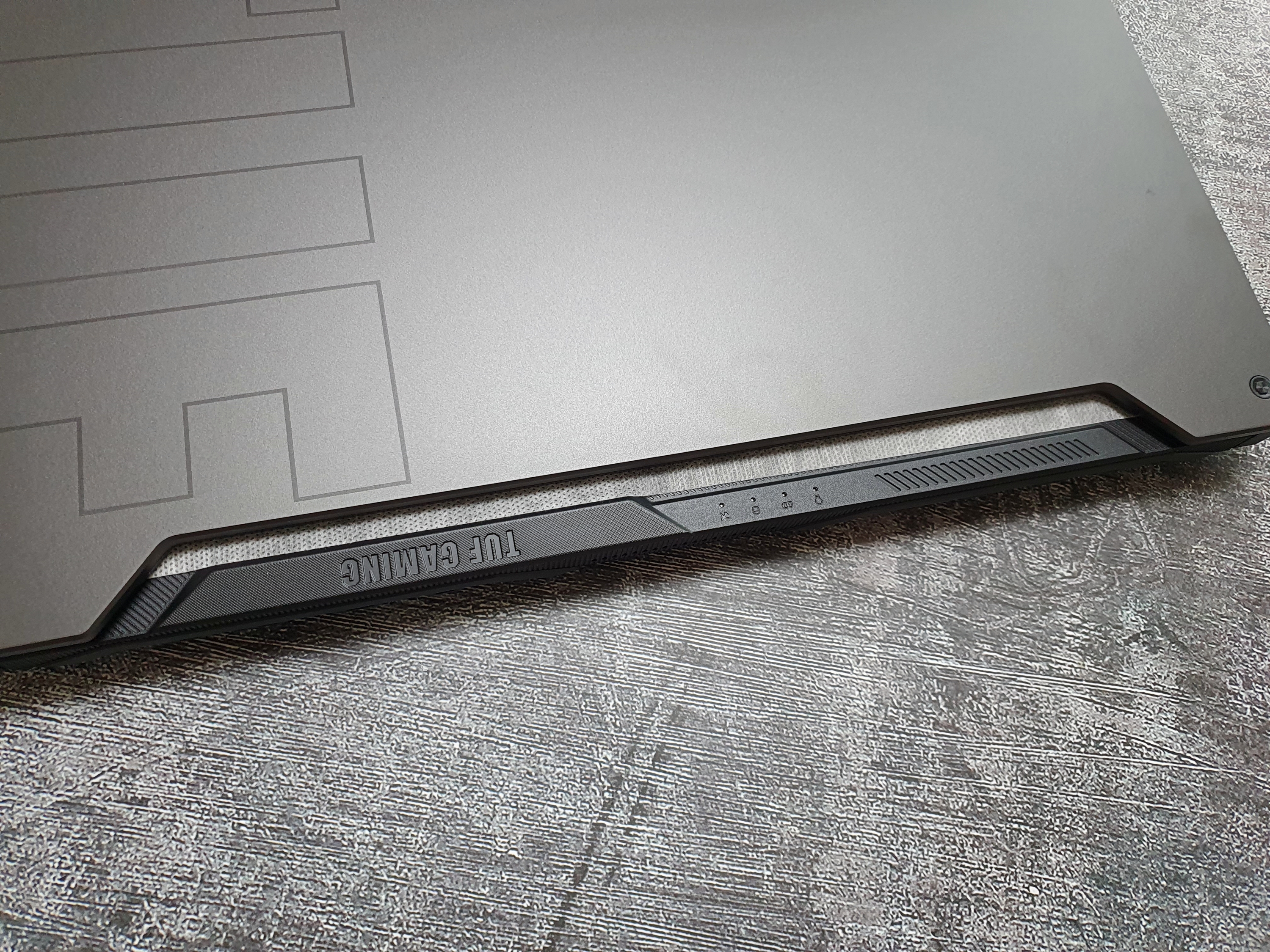 힌지 부분에는 지시등과 TUF GAMING 로고가 멋스럽게 새겨져있다.