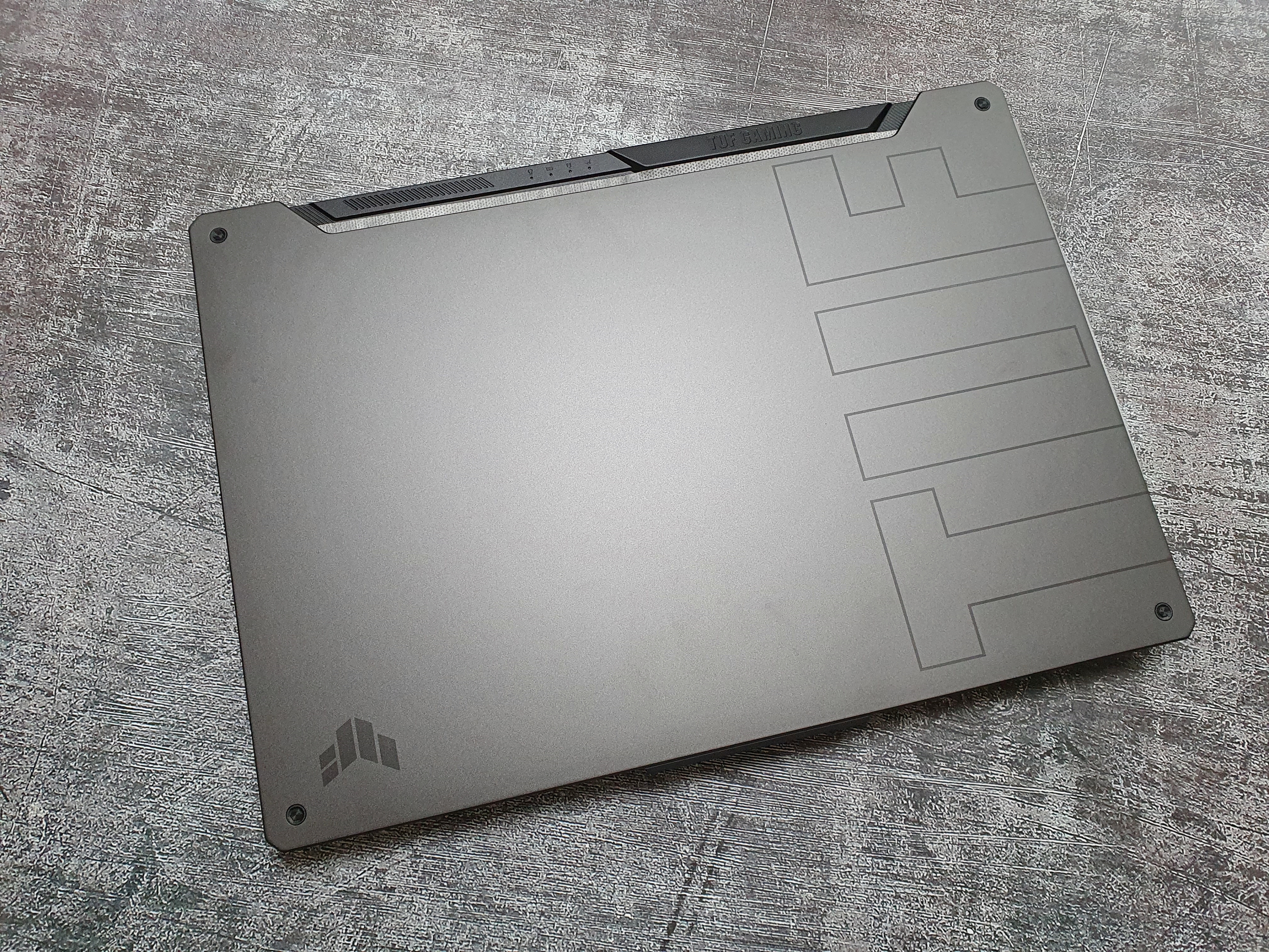 15.6인치 노트북으로서 359 x 256 x 243mm (WHD) 사이즈이며 무게는 2.3kg이다. 외관 디자인은 세련된 이클립스 그레이 컬러와 질감이 잘 묻어나는 재질로 ASUS TUF의 거칠면서도 강인한 디자인이 잘 드러난다.