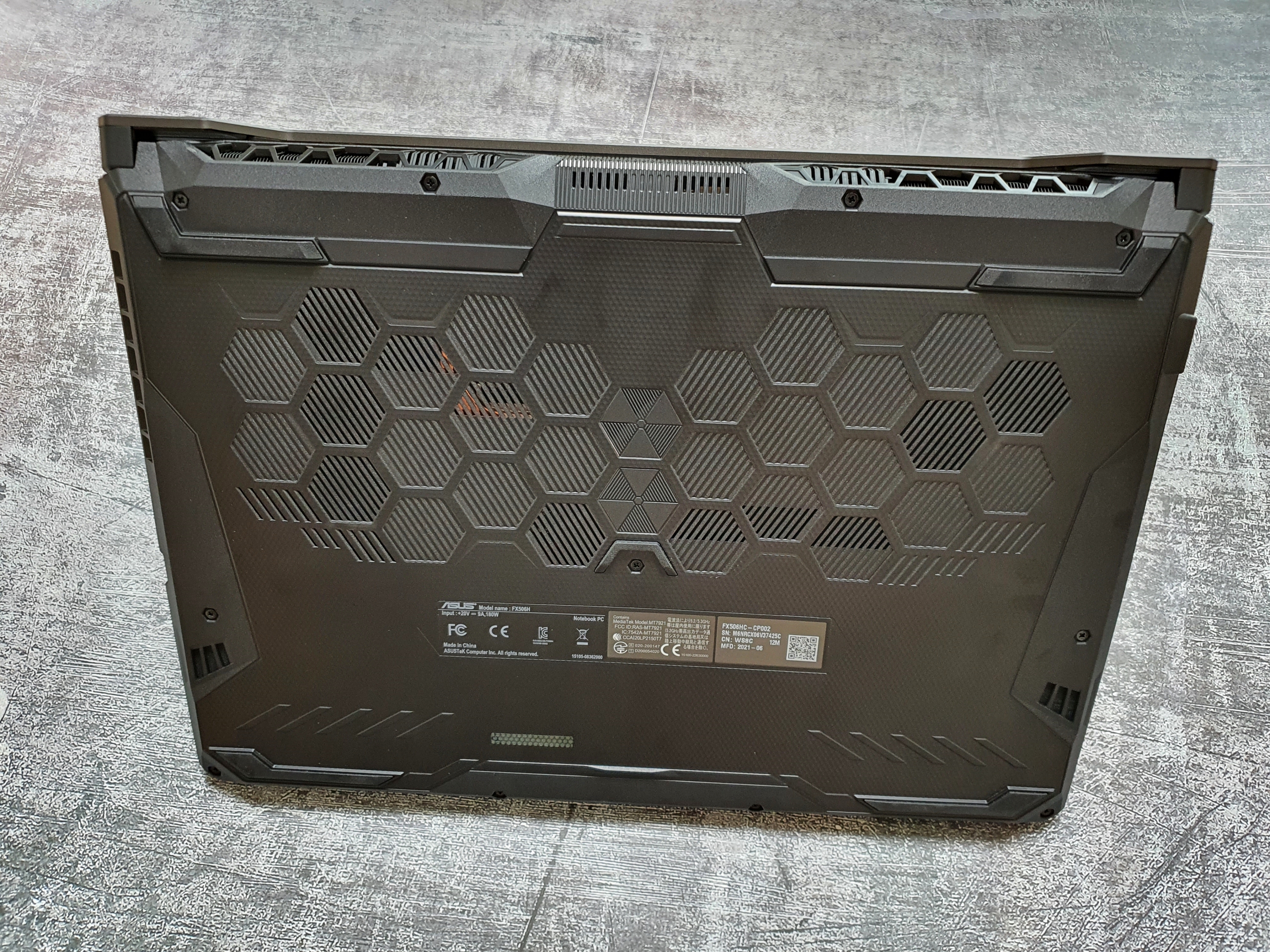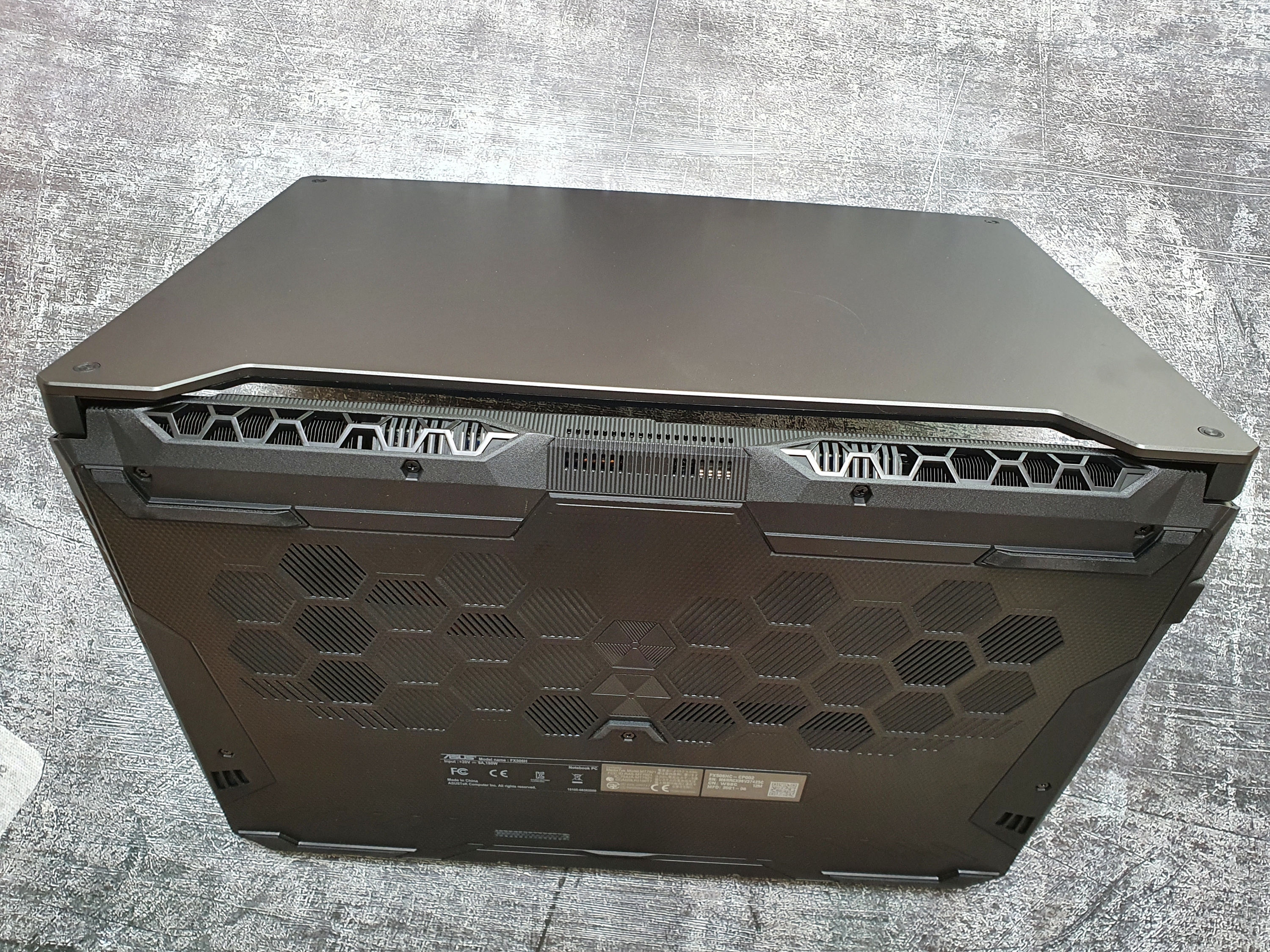 바닥면과 힌지 뒷부분에는 내부 CPU와 GPU의 열을 외부로 효율적으로 배출할 수 있도록 허니컴 육면체 모양으로 통풍구가 넓게 퍼져 있다.