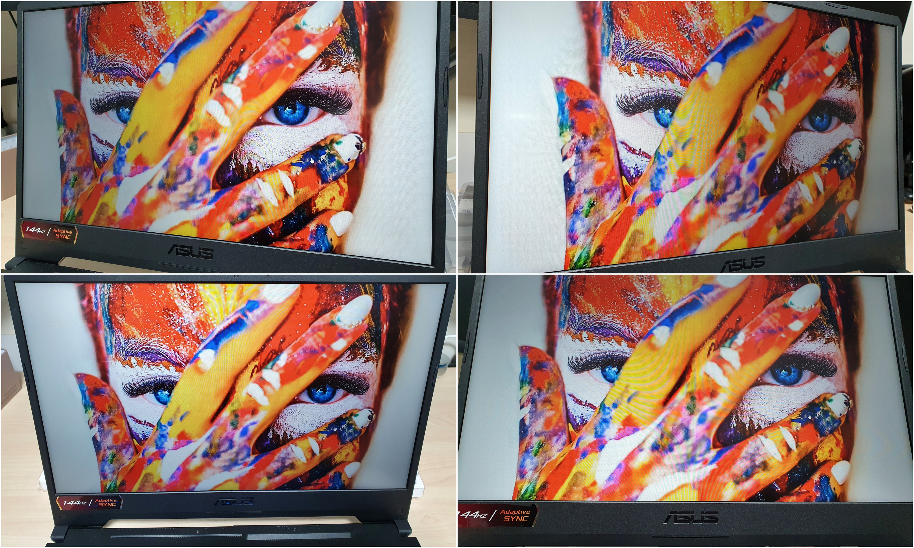 디스플레이는 IPS 패널이 채택되어 62.5% sRGB를 지원하며 컬러부분에서 약한감이 있으나, 144Hz 고주사율과 어댑티브 싱크 등의 지원을 통해 속도만큼은 뛰어난 성능을 갖고 있다. 또한 눈부심 방지 코팅이되어 있어서 평상시에도 사용하기에 편리하다.