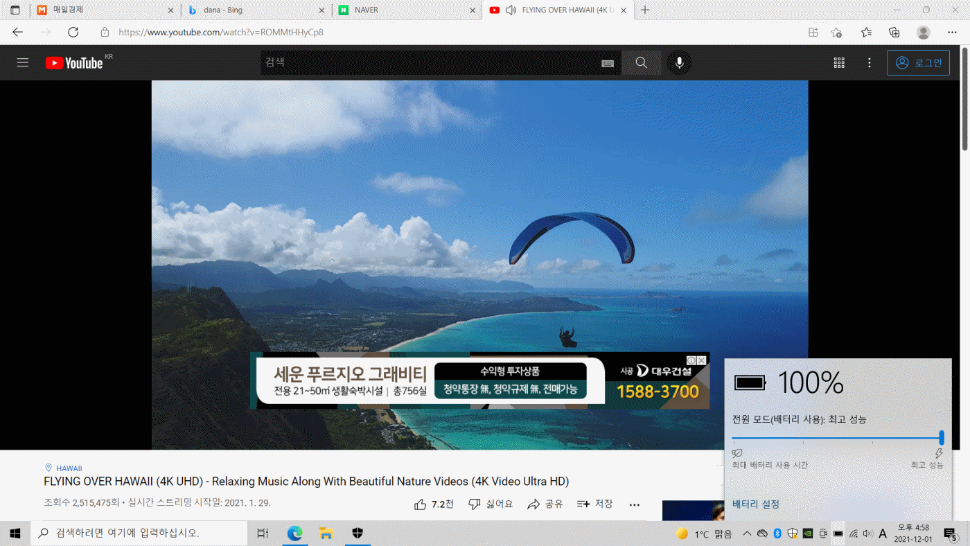 실제 테스트 결과 최고 성능모드로 사용했을 때 오후 5시경 시작해서 9시 10분경 배터리 전원이 부족하다는 메세지가 나올때까지 총 4시간 가량 사용할 수 있는 러닝타임을 가지고 있다. 특히 전단계에서 최고성능이 아닌 배터리 용량에 ?따라 보통, 또는절전모드로 전환하였다면 사용시간은 훨씬 늘어날 것이다.