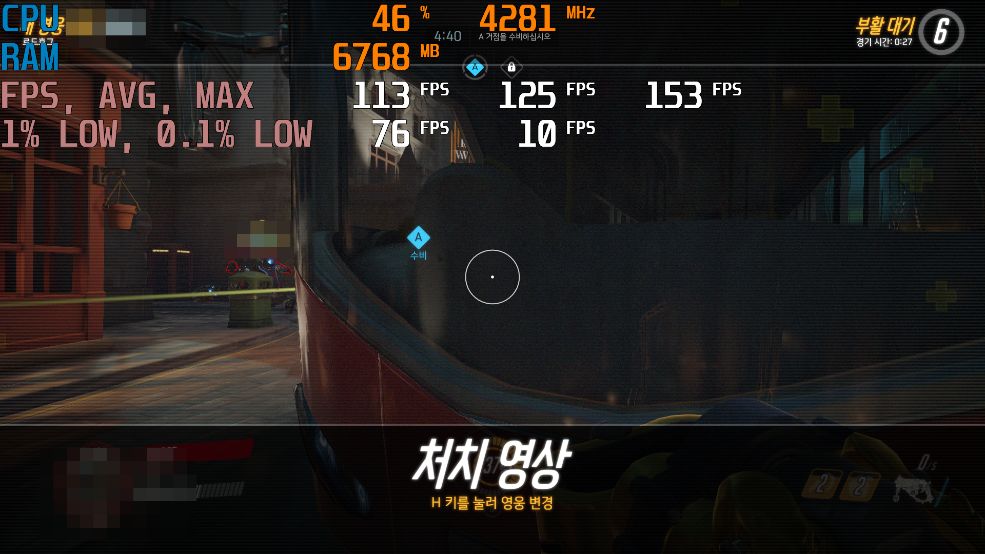 오버워치 높음 옵션 기준으로 했을때 평균 125프레임을 기록하여 노트북임에도 불구하고 유감없이 게임을 즐길 수 있었다.