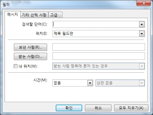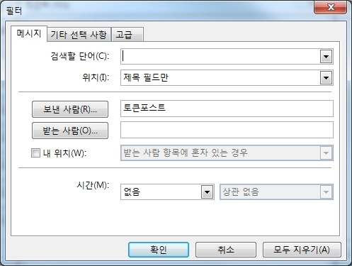 4. 그리고나서 조건을 지정 해 주면 되는데, 저는 특정 중요한 사람한테 온 메일을 잘 확인하기 위해서 그 사람의 메일 제목에 붉은색을 표시해 보겠습니다. "보낸 사람"에 메일주소를 넣어주거나 보낸 사람 이름을 적어줍니다.