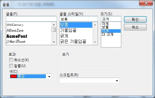 그리고 난 후에 글꼴을 선택 후 색깔과 글꼴스타일과 글꼴 크기를 정해주면 됩니다.
