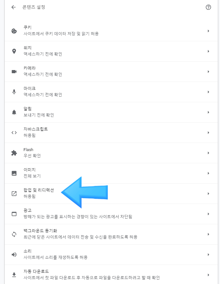 크롬 팝업차단 해제 방법 설명