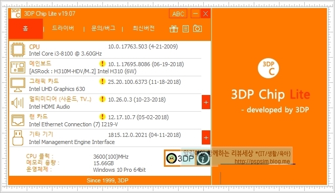 오늘은 3DP CHIP 컴퓨터, 노트북 드라이버 통합 설치 프로그램에 대한 정보를 알려드릴까 합니다.