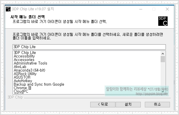 설치폴더라던지 메뉴폴더 선택 등은 그냥 처음에 있는 그대로 선택 해 주고 진행하면 됩니다.