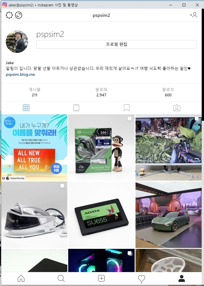 그러다 보니 모바일로도 하기는 하지만 가끔씩 pc버전으로 들어가서 정리하곤 하는데, 인스타그램은 유독 pc로 접속하기가 힘든 환경이더군요.