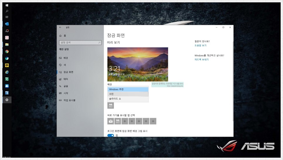 윈도우10 배경화면 및 화면보호기(잠금화면) 변경 방법