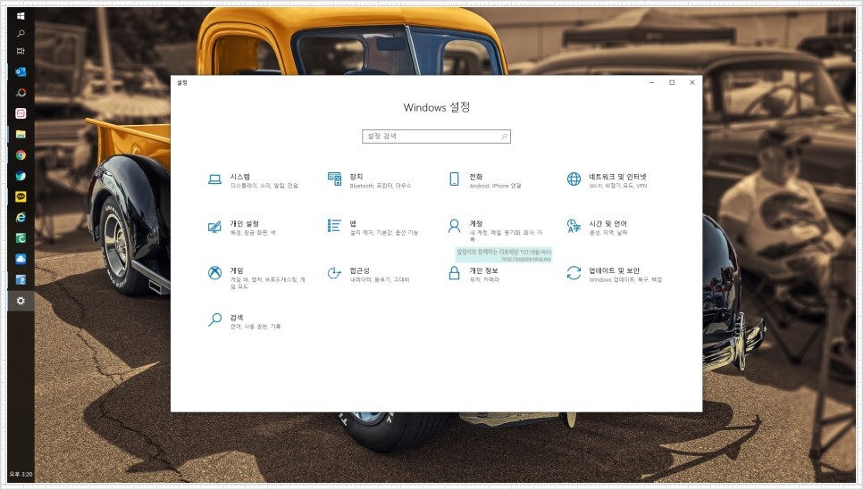 이것을 누르면 윈도우 설정 화면이 나오고 여기에서 여러가지 다양한 설정을 변경할 수 있습니다.