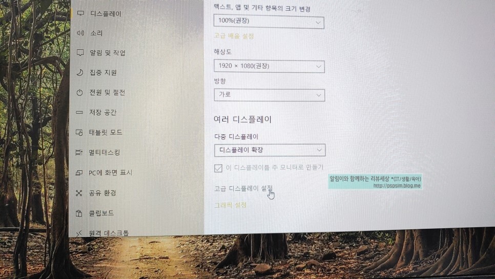 그러면 위와 같이 "고급 디스플레이 설정" 이라는 메뉴가 보이실겁니다.