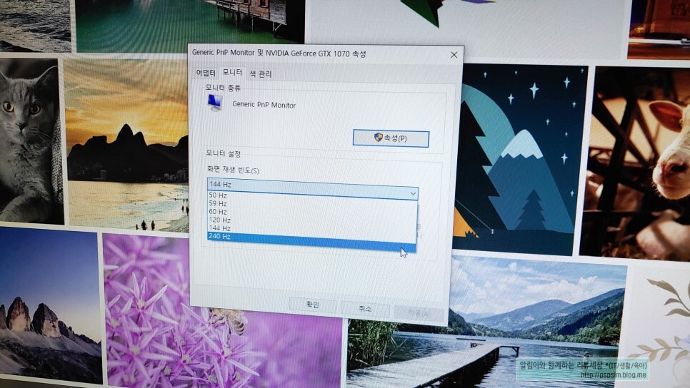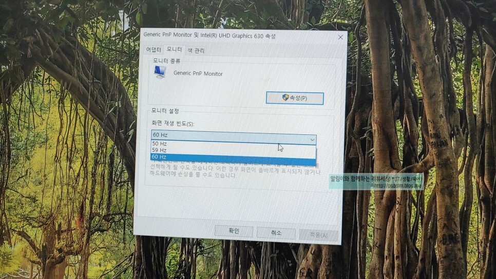 여기를 보시면 자세히 보실 수가 있는데요. 최소 60hz 이상을 설정하여야 좋습니다.