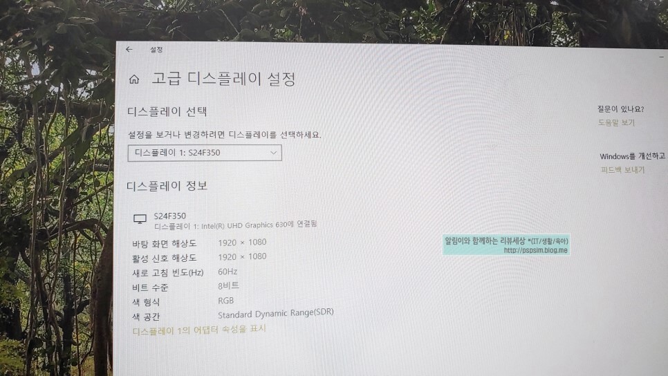 고급플레이 설정 화면에서 디스플레이1:S24F350 이라고 나오는데, 이건 본인이 사용하는 모니터의 모델에 따라 다르게 나옵니다.