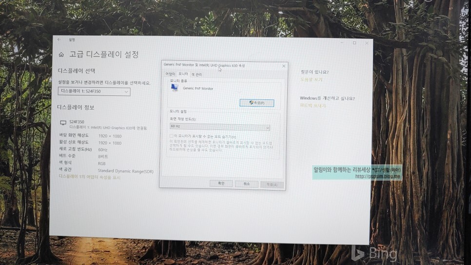 윈도우10 모니터 주사율 변경하기