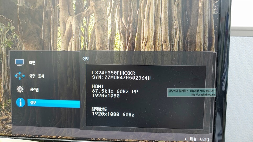 모니터에서 직접 OSD (디스플레이 메뉴설정)에서 확인 해볼 수 있습니다.