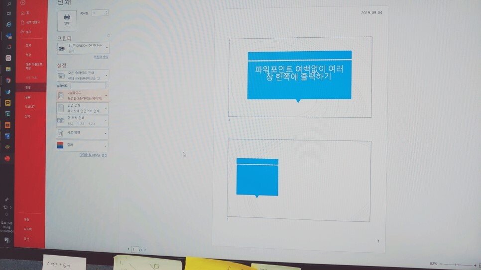 그러며 한 장에 2슬라이드를 선택하던 아니면 4슬라이드를 선택하던 꽉 차게 인쇄가 되어 훨씬 보기 좋습니다.