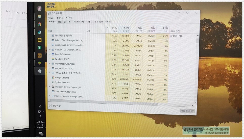그러면 어디서 많이 보던 작업 관리자 화면이 보이게 됩니다.
