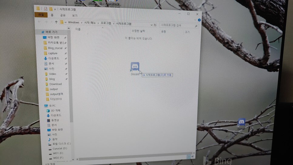 그러면 위와 같이 폴더가 열립니다. 여기에 시작 시 자동으로 구동하고 싶은 프로그램을 마우스로 드래그 앤 드롭을 통해서 넣어주면 됩니다.