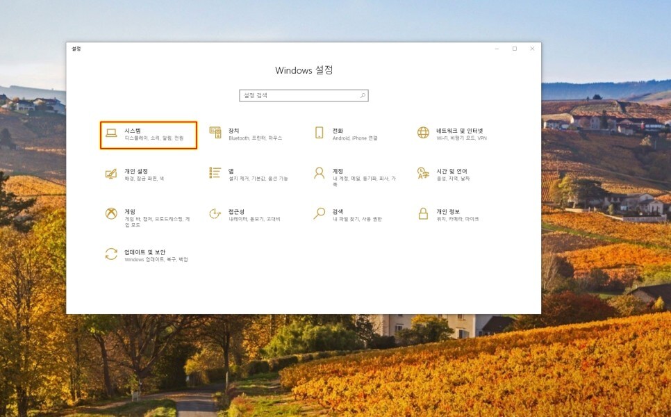 그러면 위와 같이 윈도우 설정하는 화면이 나오고, 여기서 시스템을 클릭 해 줍니다.