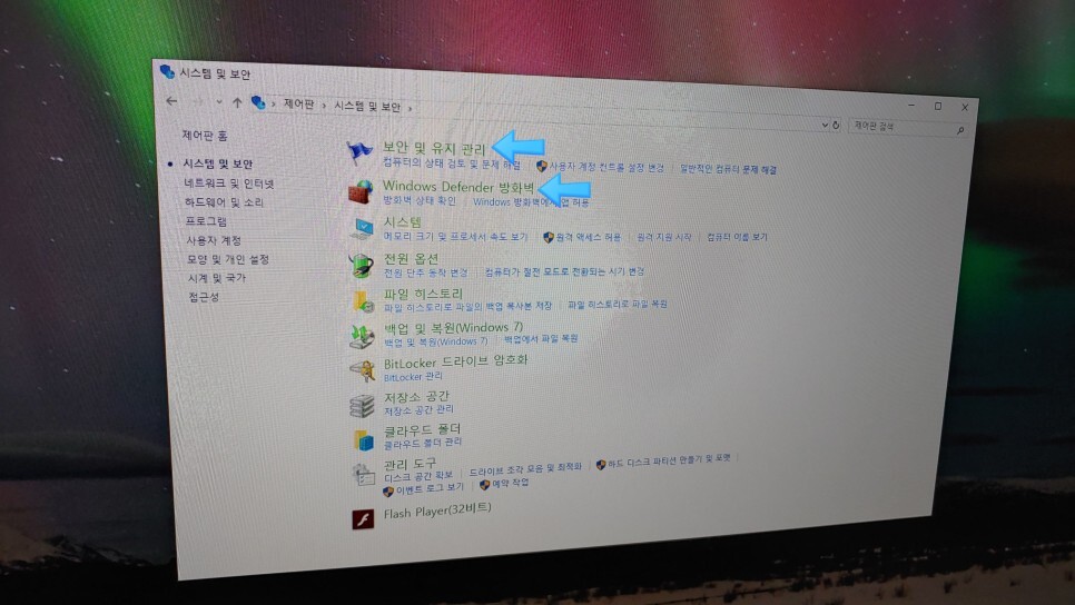 제어판으로 들어가시면 컴퓨터 설정변경이 보이고 여기서 시스템 및 보안을 선택을 해줍니다.