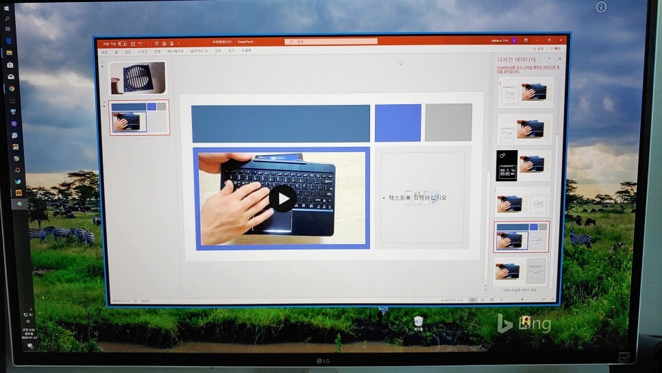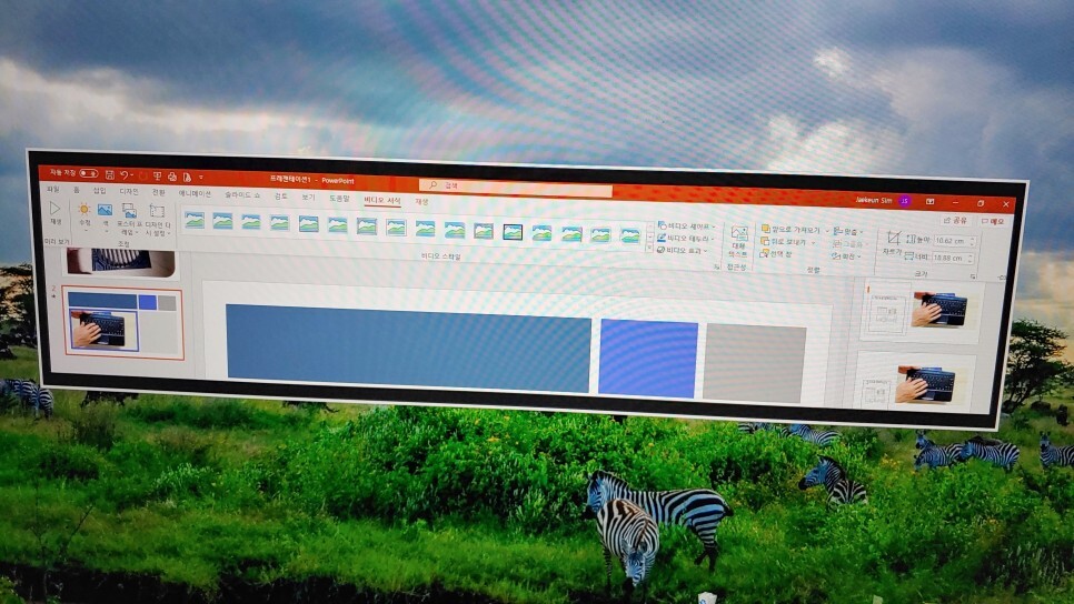 그러면 아까와 마찬가지로 파워포인트 동영상 삽입이 쉽게 됩니다. 그리고 나서 디자인 미디어(우측)에서 다양한 레이아웃을 설정하면 더욱 효과적인 전달이 가능합니다.