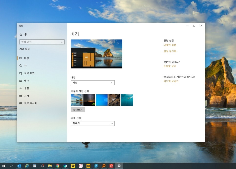 윈도우 10 컴퓨터 바탕화면 바꾸기!