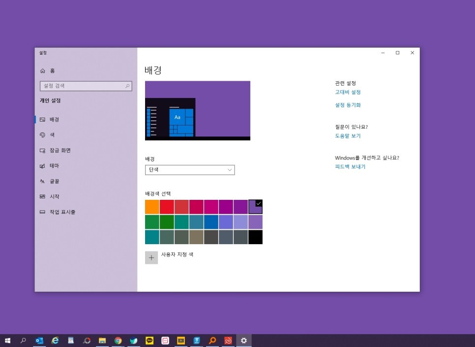 단색은 말그대로 사진을 넣는게 아니라 어떤 한가지 색으로 바탕화면을 꾸며 주는 것을 말합니다.