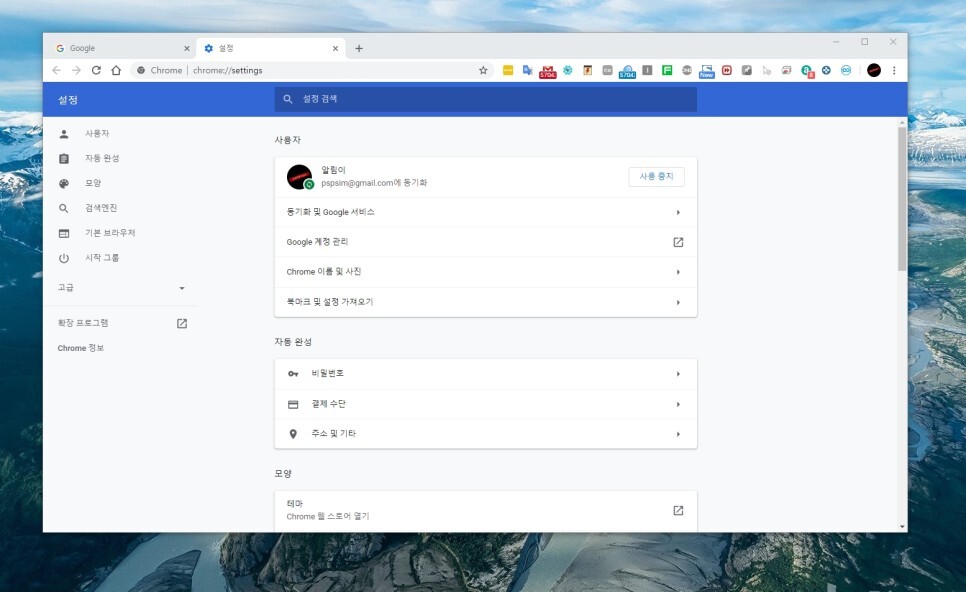 그러면 크롬 설정 화면이 나오는데 여기서 제일 밑으로 내려줍니다.